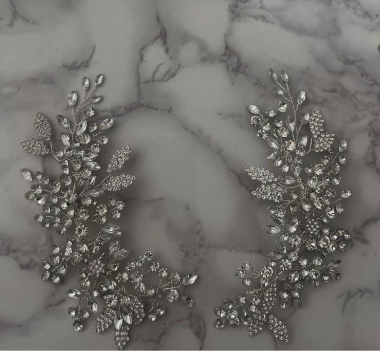 Set de dos piezas de ramas de cristales con ramas d hojas de pedrería